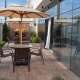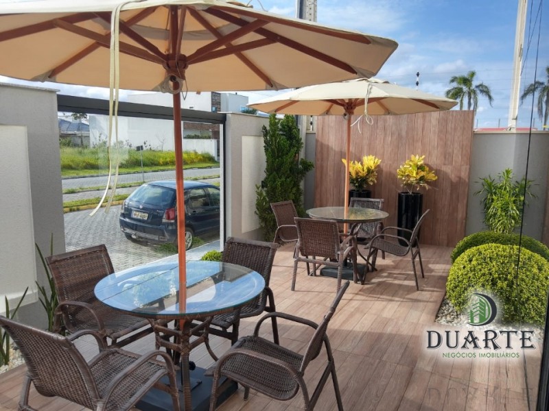 Salão de festas mobiliado com terraço