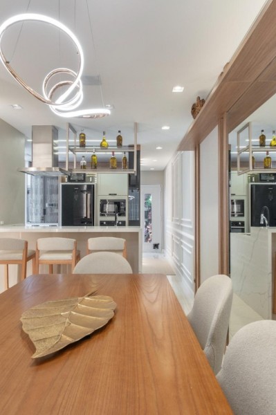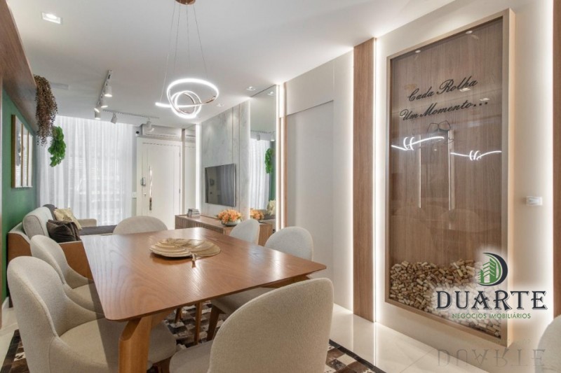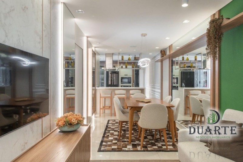 •Ambientes integrados: sala, sala de jantar e cozinha com bancada de cascata.