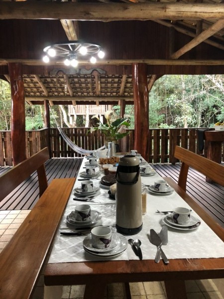 Casa com 5 Suítes, Espaço Gourmet, Sala de jantar, Sala de TV, Dispensa, Banheiro social, Área de Festa com Fogão e Forno a lenha, Churrasqueira, Lareira, Deck com Piscina.