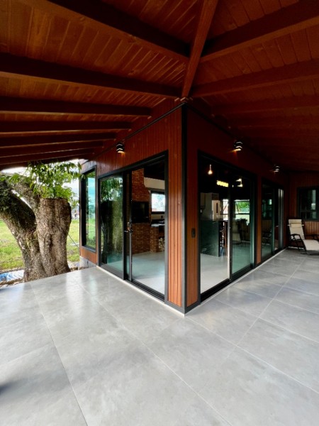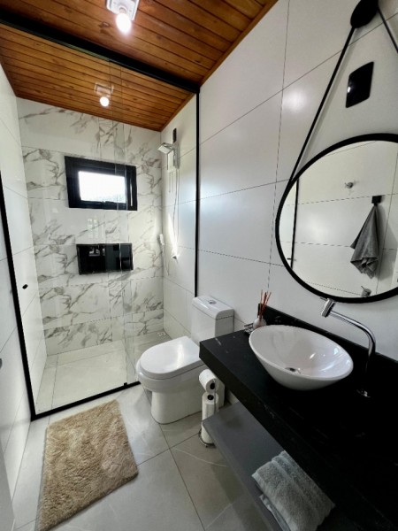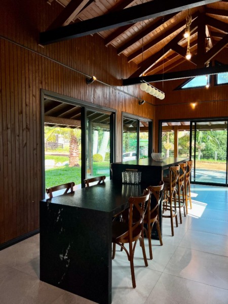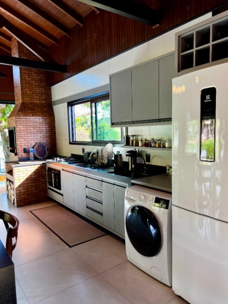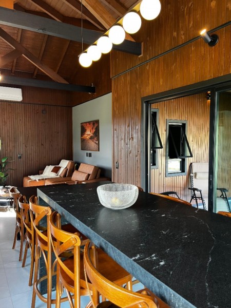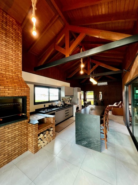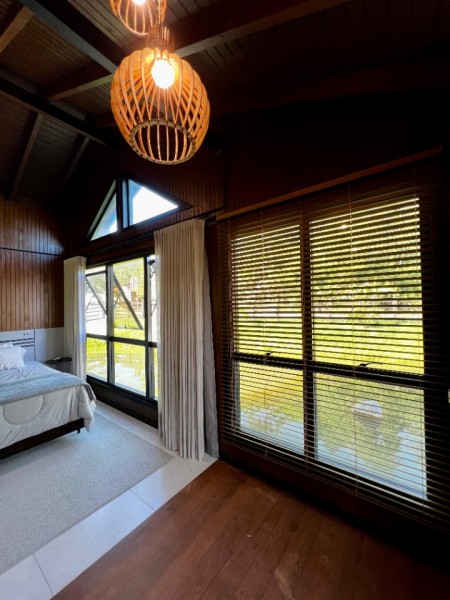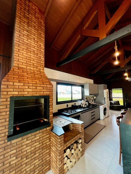 - Casa com aproximadamente 100m2 construídos que dispõem de uma linda lagoa, jardim decorado, sala e cozinha integradas, 1 dormitório sendo suíte, banheiro social, churrasqueira com fogão de lenha, mobiliado e decorado