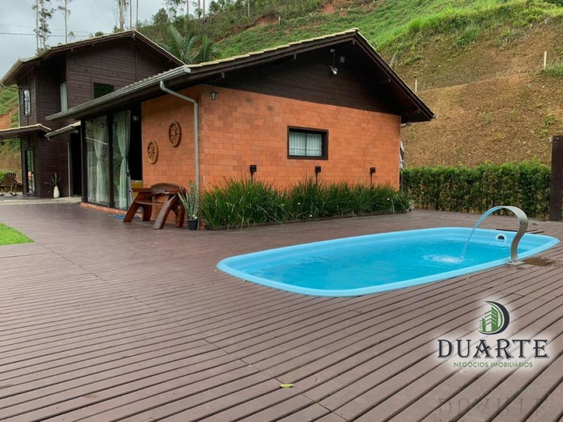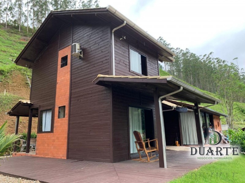 O Sítio possui uma bela casa em madeira de dois pisos, composta por: