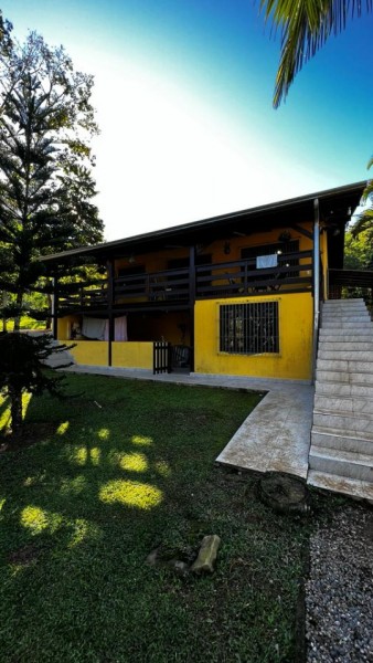 Possui uma excelente casa em alvenaria, com 200m2, sendo 3 quartos, sala, cozinha, banheiro, garagem.